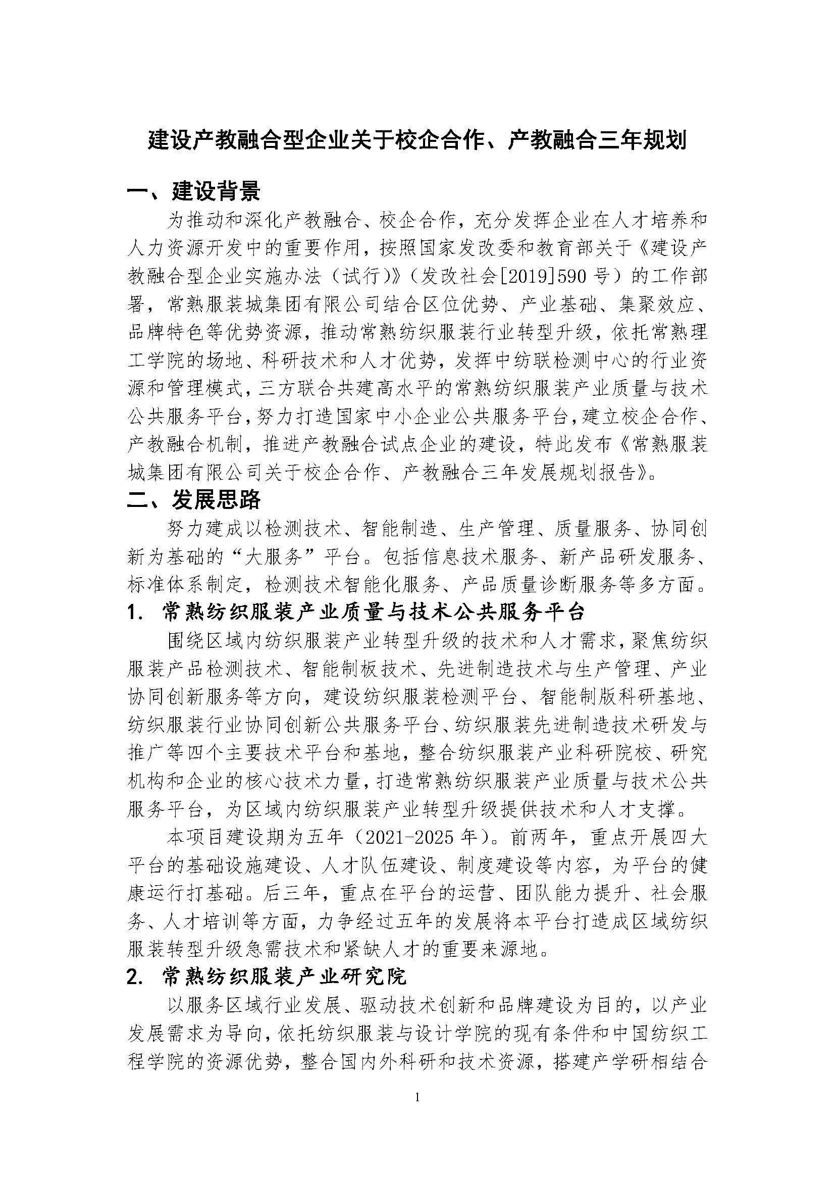 建設(shè)產(chǎn)教融合型企業(yè)關(guān)于校企合作、產(chǎn)教融合三年發(fā)展規(guī)劃報(bào)告